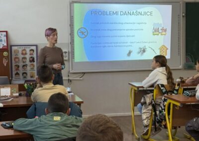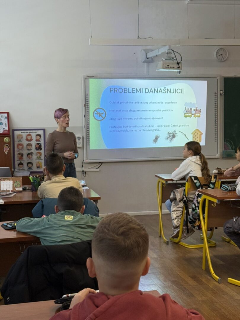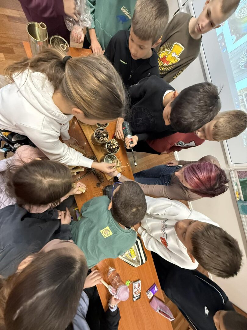 U uvodnom dijelu radionice održano je kratko predavanje tijekom kojeg su sudionici upoznati s važnosti kukaca u ekosustavu, njihovom ulogom u oprašivanju te načinima kako im možemo pomoći u urbanim i školskim okruženjima. Nakon teorijskog dijela uslijedio je praktični rad. Sudionici su samostalno izrađivali hotele za kukce koristeći različite materijale poput limenki, drva i prirodnih ispuna. Aktivnost je poticala kreativnost, timski rad i razvoj praktičnih vještina, a izrađeni hoteli mogu se koristiti u školskom dvorištu ili kod kuće.