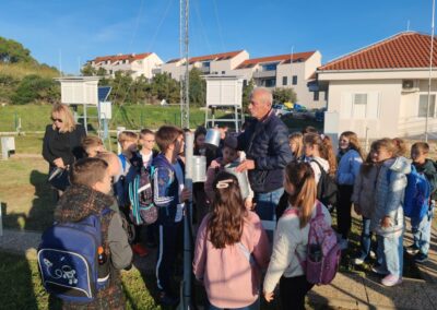 Učenici 3.b i 3.e razreda naše škole posjetili su Meteorološku postaju gdje ih je djelatnik postaje srdačno dočekao i upoznao s time kako se svakodnevno mjeri i prati vrijeme. Djeca su imala priliku vidjeti različite instrumente, poput kišomjera, termometara i uređaja za mjerenje vjetra, te postavljati pitanja o svemu što ih zanima.