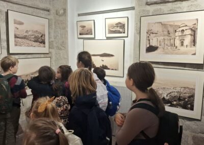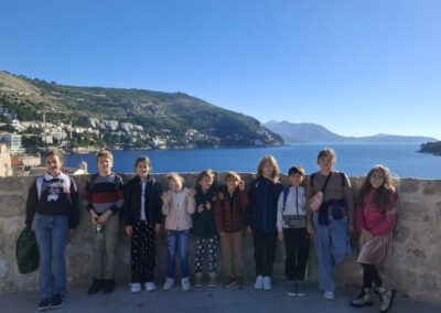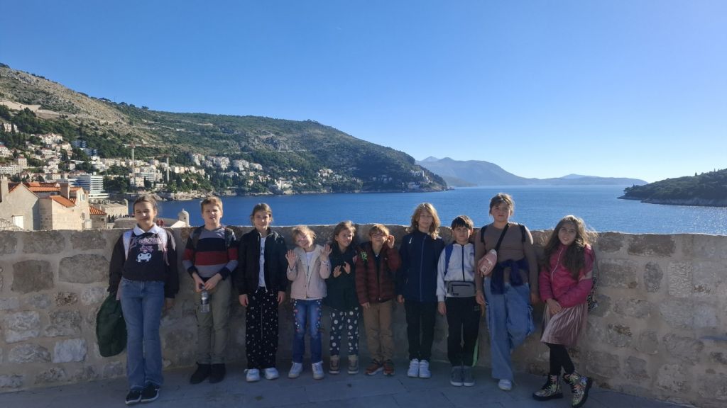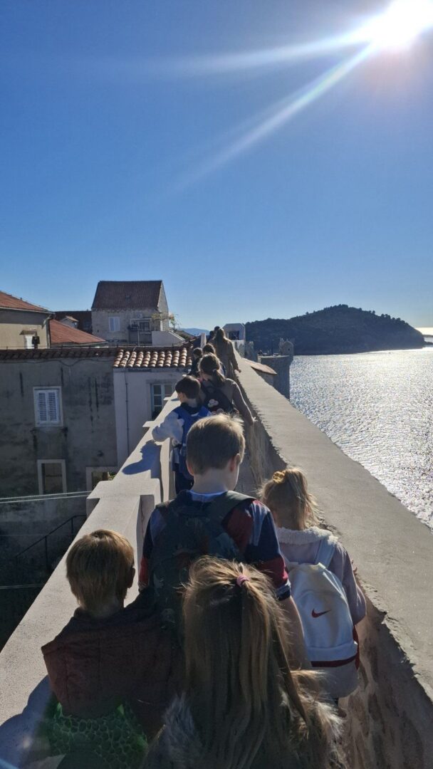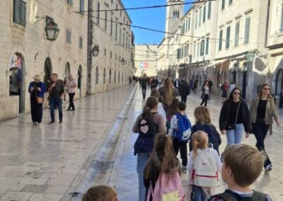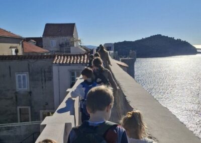 Terenska nastava započela je obilaskom Dubrovačkih gradskih zidina. Tijekom šetnje učenici su imali priliku izravno doživjeti izgled i značaj obrambenog sustava grada te čuti osnovne povijesne informacije prilagođene njihovoj dobi. Nakon toga posjetili smo Spomen dom hrvatskih branitelja, gdje su učenici dobili priliku upoznati se s novijim povijesnim događajima te s ulogom branitelja u obrani grada.
