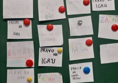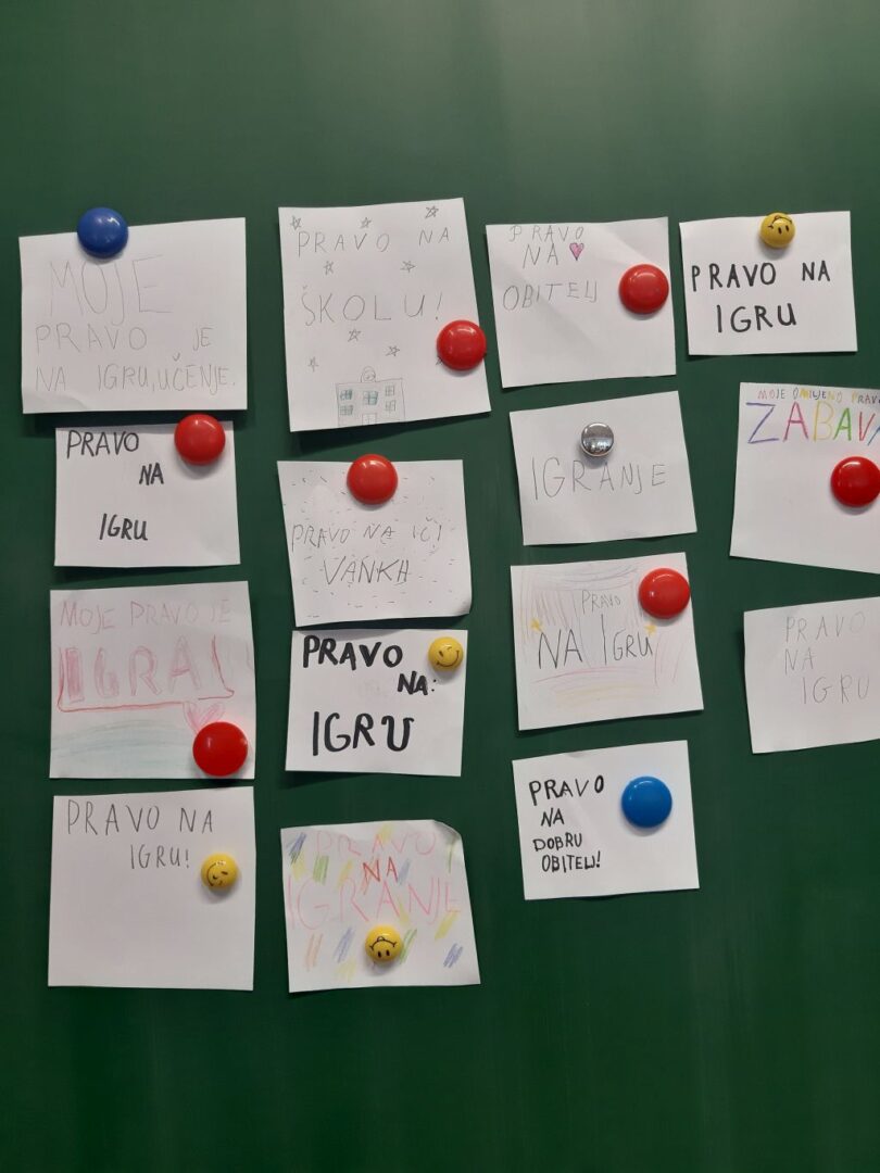 Poseban naglasak stavljen je na pravo svakog djeteta na izražavanje mišljenja, na igru, odmor, obrazovanje, prijateljstvo i sigurnost. Kroz radionice i grupne zadatke učenici su izražavali svoje ideje, pisali poruke, crtali i izrađivali plakate s važnim porukama o dječjim pravima.