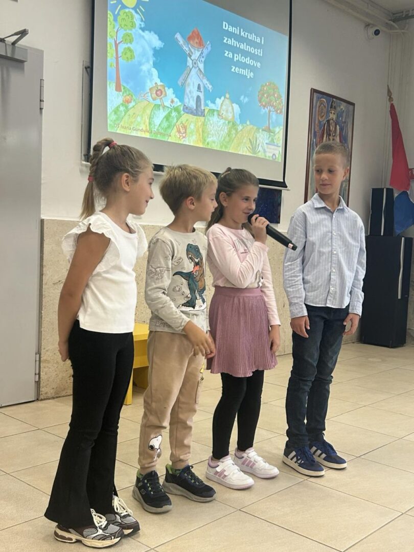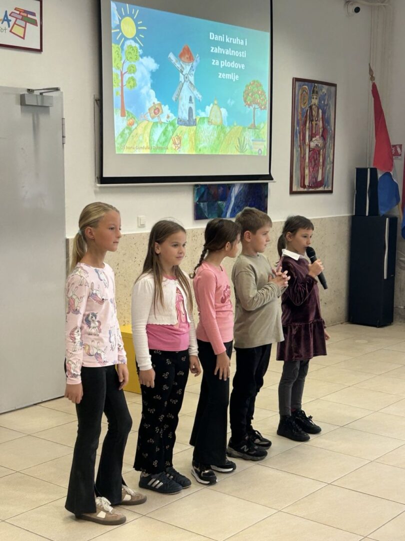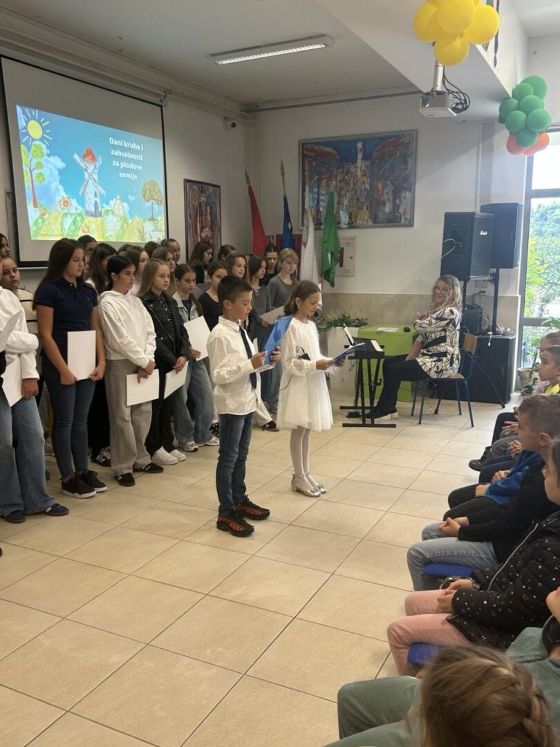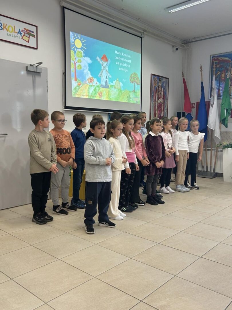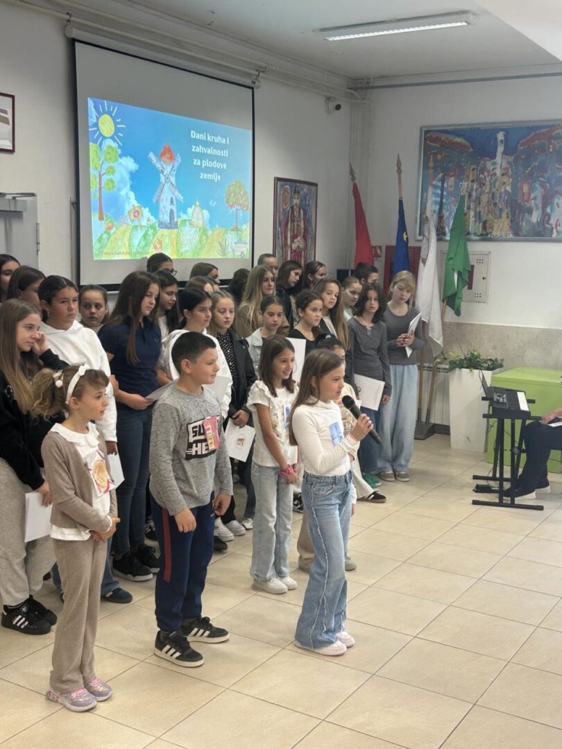 Učenici razredne nastave školskom su priredbom proslavili Dane kruha i zahvalnosti za plodove zemlje. Pjesmom i stihovima prisjetili su se koliko je važno zahvaliti na svemu što imamo – na kruhu koji jedemo, voću i povrću koje raste u voćnjacima, i svemu što nam priroda daje.