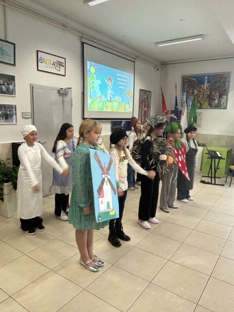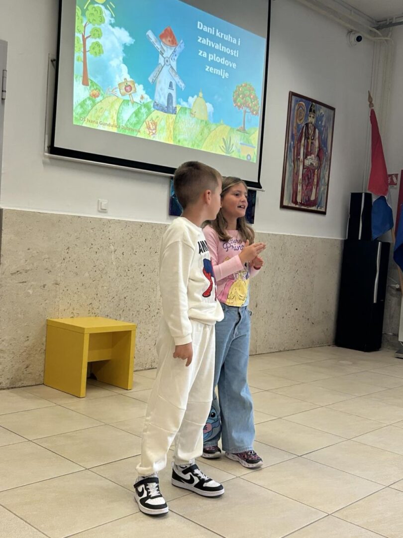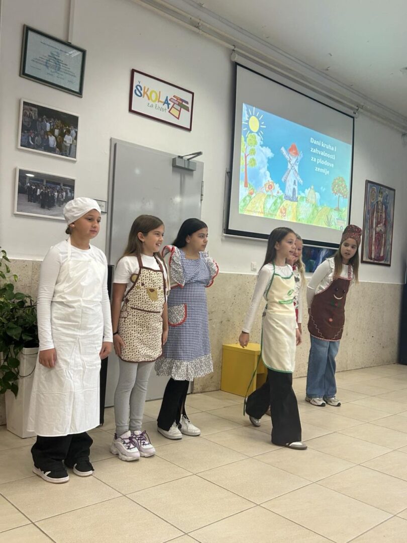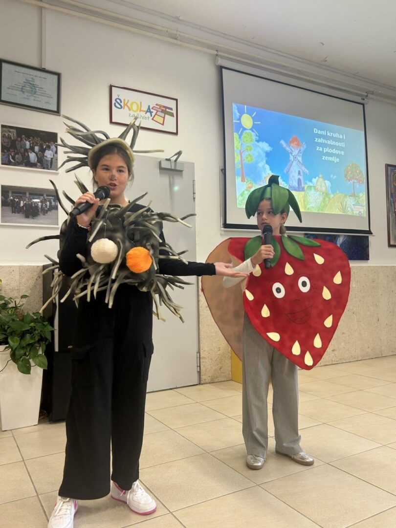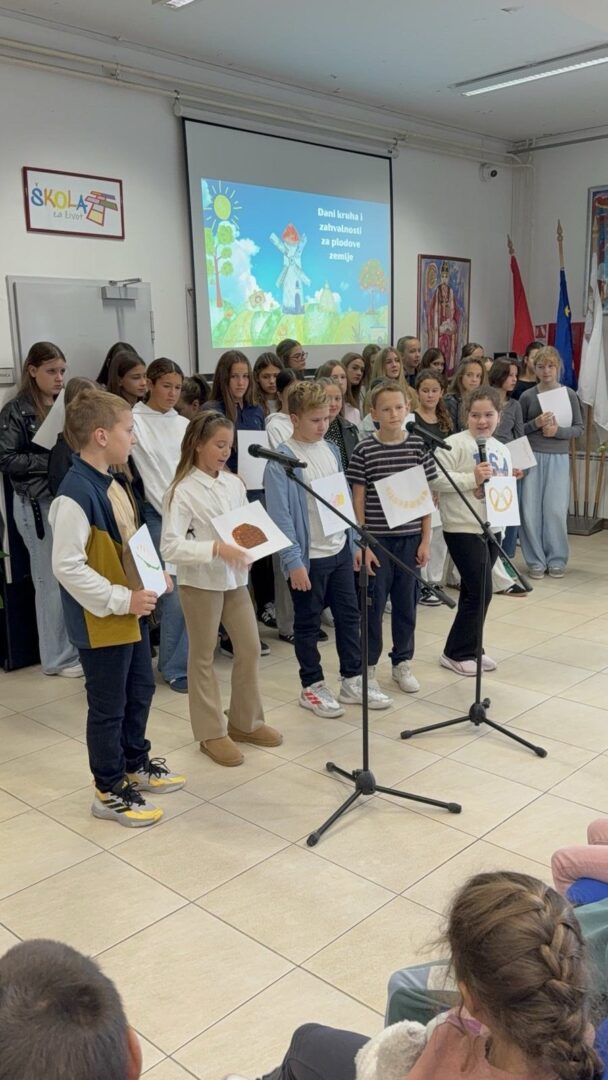 Učenici razredne nastave školskom su priredbom proslavili Dane kruha i zahvalnosti za plodove zemlje. Pjesmom i stihovima prisjetili su se koliko je važno zahvaliti na svemu što imamo – na kruhu koji jedemo, voću i povrću koje raste u voćnjacima, i svemu što nam priroda daje.
