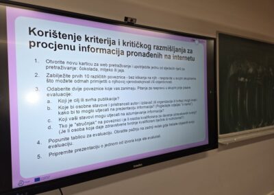 Učenici su uz mentorstvo svojih razrednica radili na razvijanju vještine prepoznavanja pouzdanih i vjerodostojnih podataka o namirnicama te evaluaciji izvora. FoodEducators je program organizacije EIT Food koji pruža zabavne, kreativne i zanimljive aktivnosti za uključivanje djece i mladih, istražuje nove načine za produbljivanje iskustava učenja o hrani te promovira zdravlje i održivost.