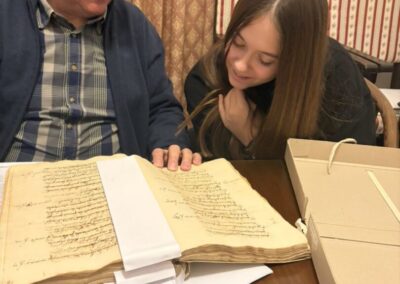 Na kraju su učenici posjetili Arhiv u kojem ih je ljubazno dočekao gospodin Frane, te im pokazao zapise vezane za Marina Getaldića i Ruđera Boškovića (s posebnim interesom učenika za područja iz fizike). Kroz ovu aktivnost učenici su imali priliku čitati rukopise iz vremena kada su živjeli naši poznati dubrovački zanstvenici.